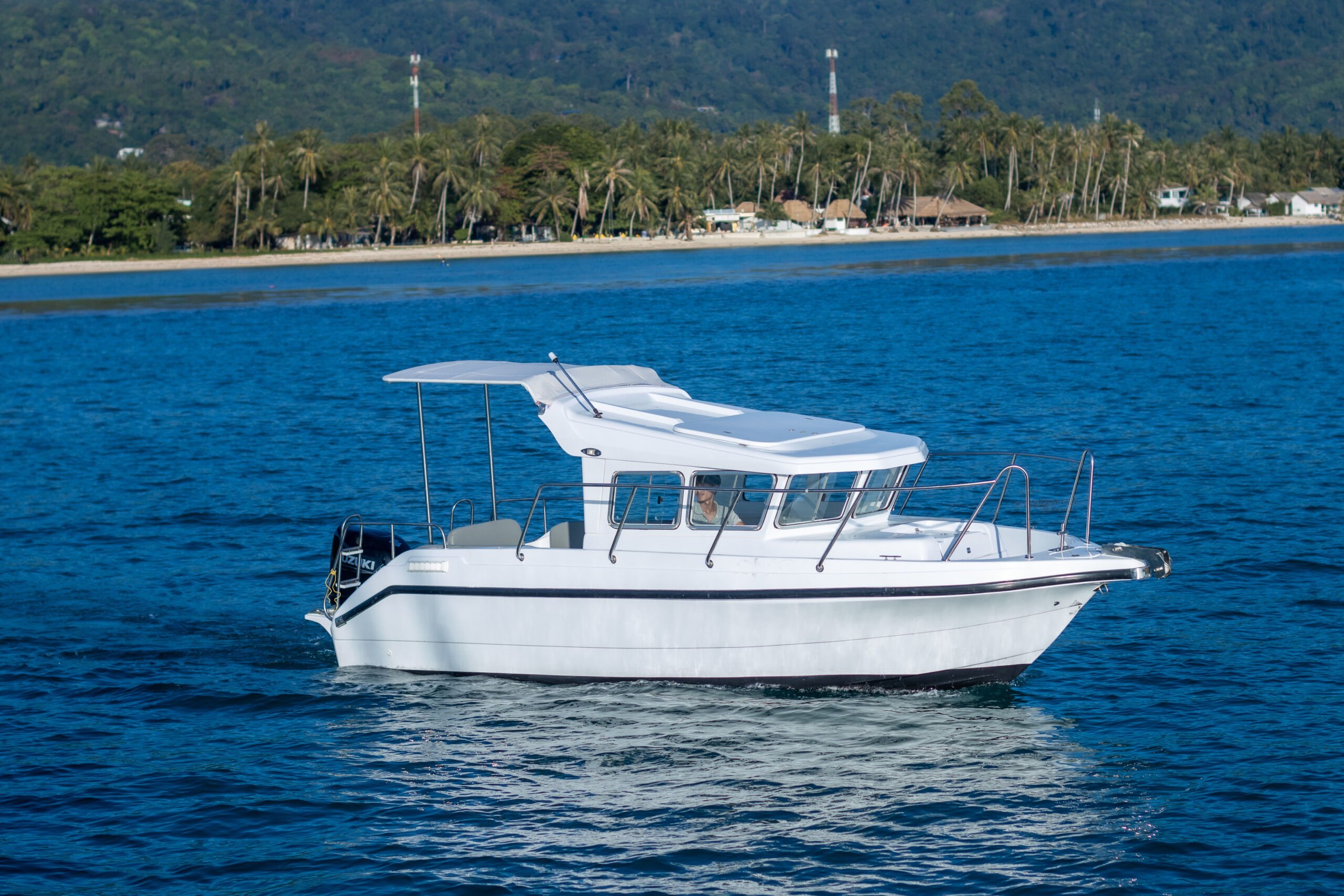 With a 140 HP single engine Seacab can reach Samui pier in 25mn with 5 passengers maximum, in case of rain the cabin is 100 % waterproof.